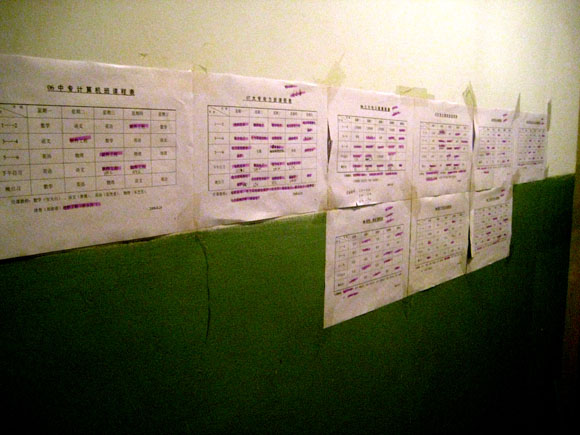课程表中画紫色横线的是我校第十届支教团代课班级