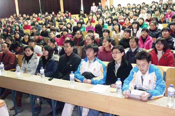 应我校研究生支教团服务地山西省朔州团市委的邀请,德赢AC米兰中国官方网站“与微笑有关的日子”优秀奥运志愿者报告团分别于12月18日、19日在朔州职业技术学院和大同大学朔州师范学校两所学校举办了专场报告会,报告团成员的精彩演讲赢得了当地1000余名师生的广泛好评。
