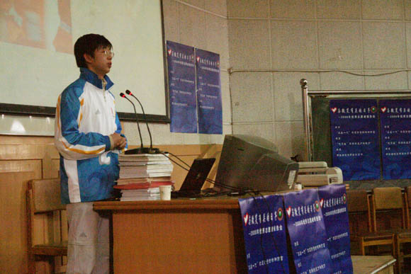在报告会上,来自材料学院的王琳欢和张鹏、宇航学院的吴曼、人文学院的黄霆、软件学院的罗甲分别用生动幽默的语言,分享了自己的奥运志愿服务经历和收获。他们用一个个小故事讲述了志愿者的《一般和不凡》、在工作中那些《酸酸的快乐 甜甜的忧伤》以及在20岁时那一年《1/20的收获》。为了便于听众了解他们的工作,罗甲同学用《这里是调度中心,收到请回复!》这样的工作用语作为演讲题目,而吴曼则告诉了大家“志愿者平方”是如何做到了《平凡的付出“平方”的爱》。