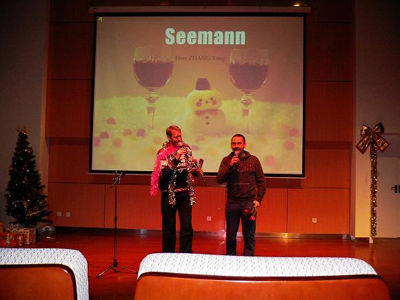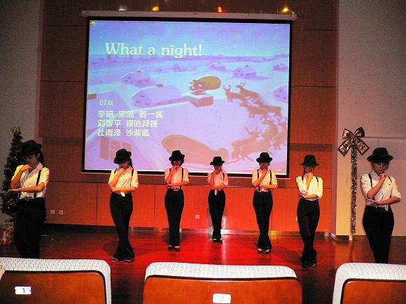 2008年12月19日18:30,德语系一年一度的圣诞晚会在良乡校区演艺厅拉开帷幕。今年的圣诞晚会由大二德语班13130701班主办,德语系本科生及研究生各年级参加演出。外国语学院副书记、副院长吴文君老师和多位德语系老师、外教前来观看晚会。