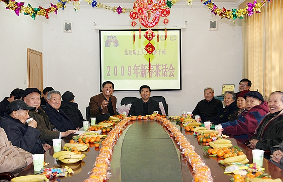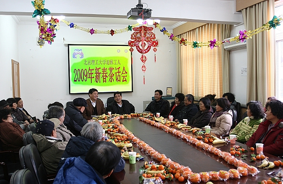2009年1月22日,学校分别召开了退休干部和退休工人的新春茶话会,50余名退休人员到会,校党委副书记侯光明,副校长赵显利以及学校相关职能部门的领导出席了茶话会。
