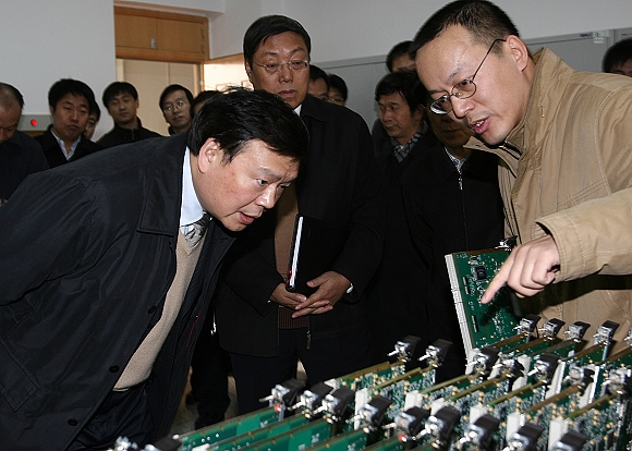 娄勤俭副部长视察了学校信息与电子学院雷达所、通信所、微波所、信息安全与对抗所,并与有关专家就某些技术问题进行探讨。