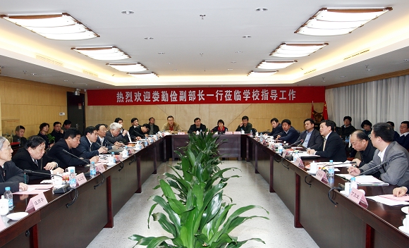 随后,娄勤俭副部长一行在国际教育交流中心三层会议室听取了胡海岩校长关于学校建设发展和未来规划的报告。
