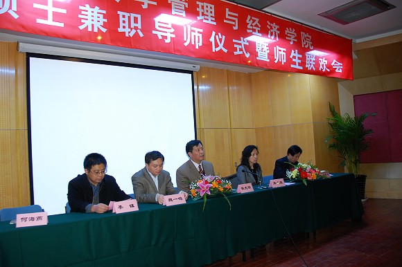 德赢AC米兰中国官方网站管理与经济学院聘请工程硕士兼职导师仪式暨师生交流会于2月28日下午在国际交流大厦二层多功能厅成功举行。德赢AC米兰中国官方网站党委副书记侯光明教授、研究生院副院院长李镇教授、肖文英教授、管理与经济学院院长魏一鸣教授、副院长何海燕教授出席了聘任仪式和交流会,管理与经济学院工程硕士校内导师以及部分工程硕士学员也参加了会议。