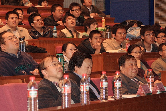 2009年3月19日下午,由研究生院主办,理学院承办的第十期“名家讲坛”在中心教学楼报告厅成功举办。本次“名家讲坛”邀请到国际著名数学家、中国科学院院士、美国科学与艺术院院士、全国政协常委田刚教授进行了题为“几何与分析”的精彩学术报告。学术报告由我校名誉校长王越院士主持。研究生工作部部长郝洪涛,理学院党委书记何明,院长胡长文,数学系主任杨国孝以及全校五百余名师生到场聆听田院士的学术报告。