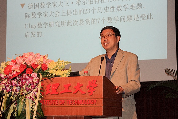 田院士介绍,1904年,法国数学家庞加莱在一篇论文中提出了一个看似很简单的拓扑学的猜想:在一个三维空间中,假如每一条封闭的曲线都能收缩到一点,那么这个空间一定是一个三维的圆球。但1905年发现提法中有错误,并对之进行了修改,被推广为:“任何与n维球面同伦的n维封闭流形必定同胚于n维球面。”后来,这个猜想被推广至三维以上空间,被称为“高维庞加莱猜想”。在解释庞加莱猜想如何从低维扩展到高维的过程,田院士举出一个形象的例子:“在大学一年级我们学习微积分时,低维中求微积分的方法是唯一的,但到高维的情况下呢?譬如有一个光滑的球面,我们可以沿着多个方向求积分,那么求解的方法就非常多了,这时微分的结构发生了变化。”同样的,在解决庞加莱猜想时,由于我们生活在三维空间中,所以无法直接对一个三维球体一览无遗,但是,我们可以通过二维情况下的球体来进行类比。田院士向在座师生介绍了现今研究庞加莱猜想的两种主要方法:Ricci流与拓扑方法,并分析了两种方法的优劣。田院士的精彩演说不时博得阵阵掌声。