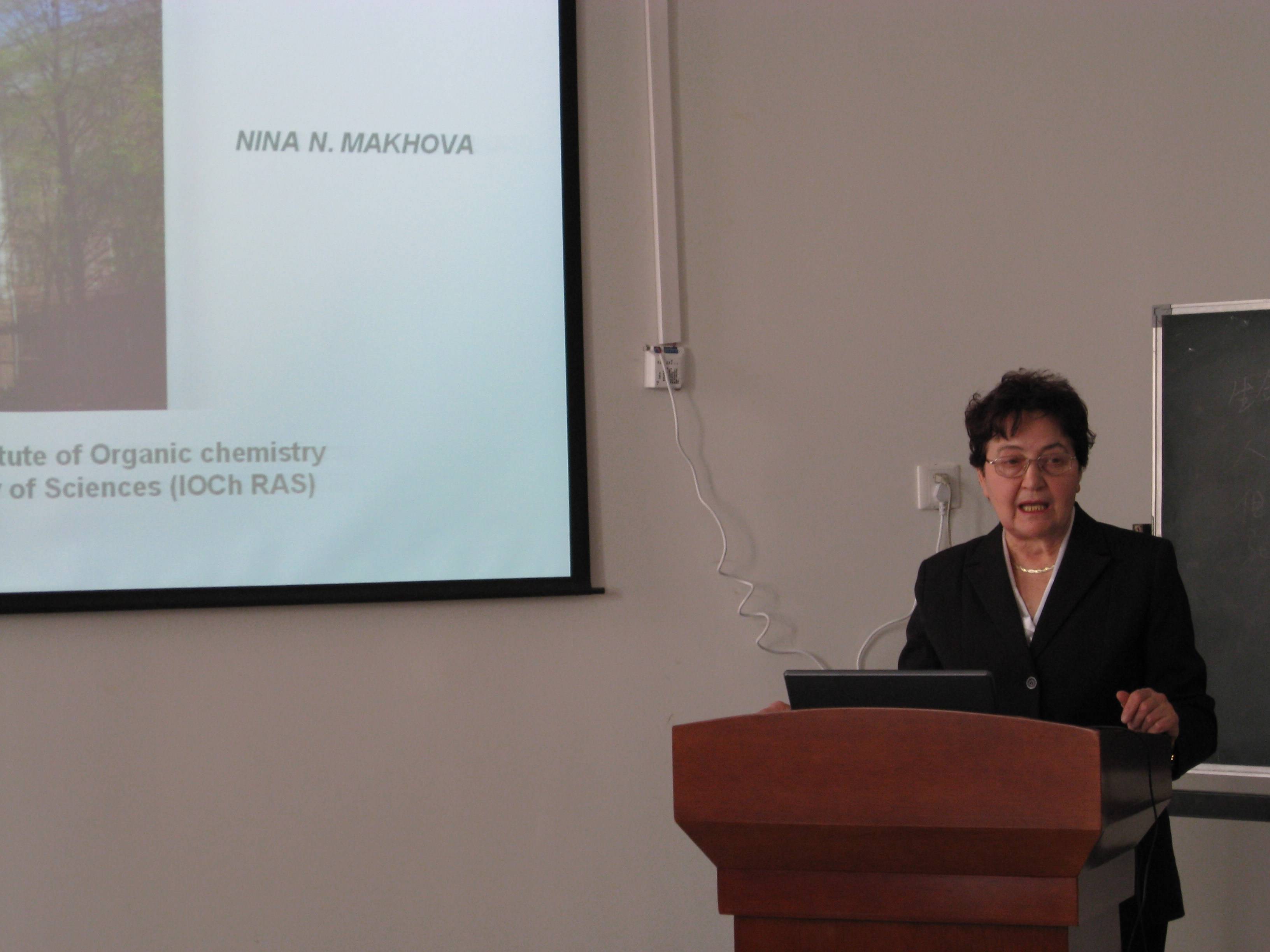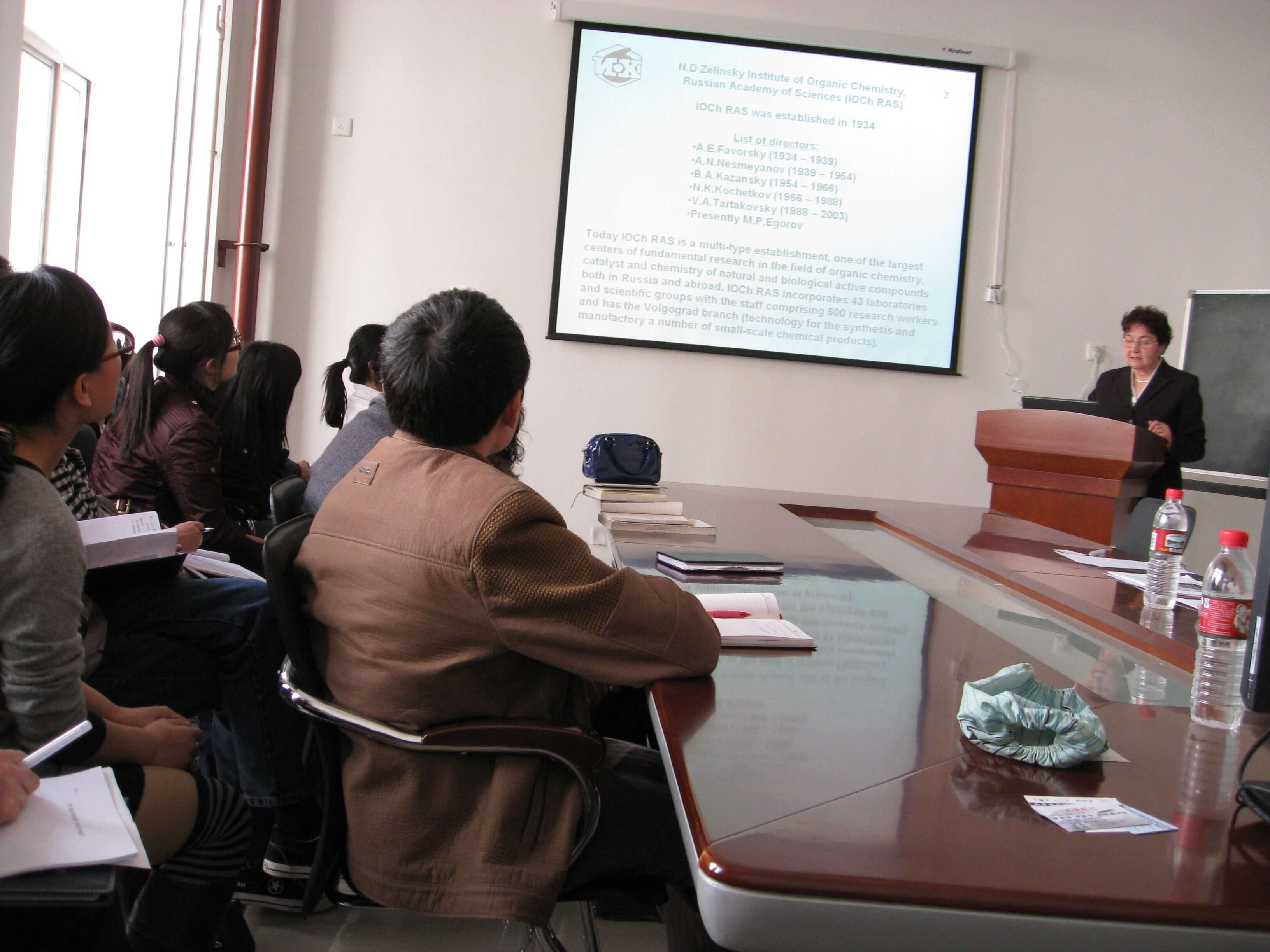 2009年3月16日下午和3月17日上午,Nina N. Makhova教授和Tatiana S. Pivina教授分别作了题为General Approaches to the Synthesis of High-energy Compounds on the Basis of Nitrogen-containing Heterocycles(含氮高能杂环化合物的合成方法介绍)和In Siloco Search for Structure of Novel Energetic Compounds with a Promising Set of Physicochemical Characteristic(通过物理化学性质预测获得含能新化合物结构的方法)的报告。