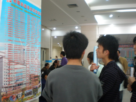 当日春风和煦,艳阳高照,招聘会的现场与天气一样暖意盎然。校体育馆内早早挂满了新疆生产建设兵团精心准备的设计精美的大幅彩绘招聘宣传海报,美丽的新疆风景和蓬勃的兵团建设景象在其上一览无余。同学们早早等候在体育馆门口,有秩序地进入招聘会现场,寻找着自己心仪的单位。兵团的招聘人员向同学们热情介绍单位的特色和发展情况,和同学们一起分析不同专业在兵团工作所担当的重任,现场人声鼎沸,笑语阵阵,气氛十分热烈。同学们充分感受到了用人单位求贤若渴的热诚。
