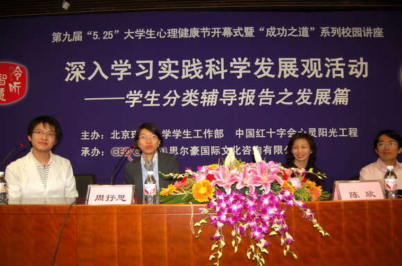 “5•25我爱我”大学生心理健康节是首都大学生心理教育活动的特色和品牌,也是我校学生心理健康教育的一项重要内容。根据当前学习实践科学发展观的形势和要求,结合学生心理发展需求,今年我校心理健康节以“职业规划与人生发展”为主题,学生工作部将继续开展心理论坛、团体辅导、电影赏析、心理主题日等系列活动。