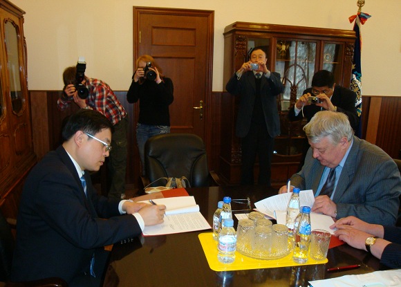 胡校长同鲍曼莫斯科国立技术大学费德罗夫校长签署两校合作协议