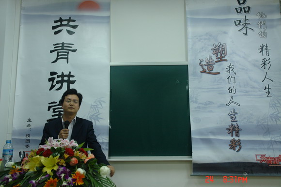 4月24日晚19:30,共青讲堂第五十二期讲座在中教322教室准时开讲。为了更好的指导同学们正确对待就业压力,鼓励同学们积极自主创业,校团委邀请西安三人行广告传媒有限公司、西安三人行信息通讯有限公司、合肥三人行教育科技有限公司、北京橙色风暴有限公司董事长兼总经理钱俊冬来校做了题为《一个特困生的创业之路》的专题演讲。钱老师用自己的亲身经历,为同学们讲述了他从一名特困生到多个公司董事长的创业之路。校团委书记徐强亲自主持了整场讲座。