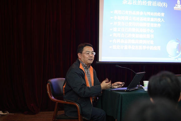 有3位业界著名专家到会作报告。中国期刊协会副会长、中华医学会杂志社社长、总编辑游苏宁编审为与会者作了题《科技期刊的体制创新与经营》的报告。中华医学会杂志社承办122科技期刊,游社长从一个成功办刊人的角度报告了自己对当前期刊发展环境和发展趋势的认识,并将自己在20余年科技期刊经营管理中取得的经验传递给与会者。