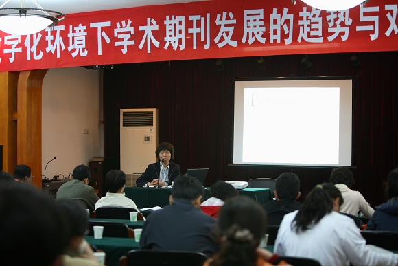 中国科学院国家科学图书馆中国科学引文数据库负责人、《中国科学计量指标》系列出版物常务副主编、长期从事数据库及文献计量分析工作的刘筱敏研究员为与会者作了题为《信息环境与期刊发展》的报告,从新兴数据服务机构和期刊评价机构的角度,阐述了数据库发展、信息传播和信息服务方式的转变对学术期刊的挑战及学术期刊应有的应对意识和策略。
