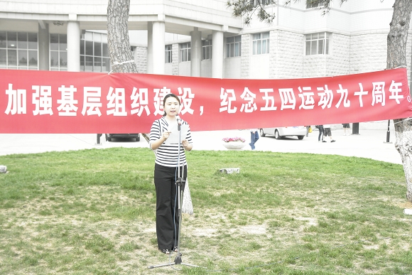 下午6:00校第六届研究生支教团在中心花园延安石刻旁边举办了“增强团员意识 加强基层组织建设”纪念五四运动九十周年宣誓活动。2009年十佳团员候选人代表、各学生组织代表参加了宣誓活动,校团委副书记衡靖在活动现场发表了热情洋溢的讲话,她号召“我校团学骨干要把团员队伍培养成最积极、最活跃、最有生气的一支力量,使之具有强烈的爱国热情、高度的社会责任感、崇高的奉献精神,用自己的努力向祖国和人民、向全世界展示当代中国共青团员崭新的精神风貌和优秀的整体形象。”