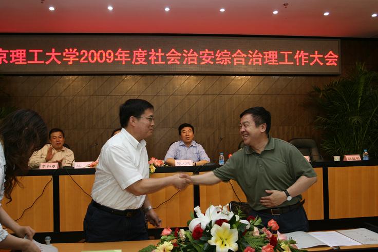 校党委书记郭大成做了重要讲话。他指出学校党政领导高度重视综合治理工作,2009年是一个特殊年,校园安全稳定的任务责任重大,各单位要认清当前形势特点有针对性地开展工作。强调各位领导干部要增强使命感、责任感,利用现阶段学习实践科学发展观时机,认真分析本单位、本部门所面临的实际情况,居安思危,警钟长鸣,增强忧患意识,切实以强烈的责任感和使命感积极履行好自己的安全职责;同时要真抓实干,做到思想落实、组织落实、责任落实、措施落实、科学谋划,处理好改革、发展和稳定的关系,抓住重点,深入推进和谐校园建设。