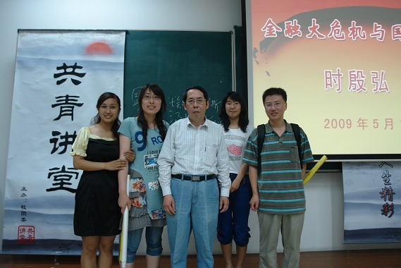 5月19日晚上7点,共青讲堂第56期在研究生楼302教室开讲,本期嘉宾是中国人民大学美国研究中心主任、国际关系学院教授时殷弘,他为同学们解析金融大危机下的国际形势和当前世界格局下的中国发展展望。时教授的讲座从历史讲起,从文化、艺术、哲学等领域全面剖析了金融危机条件下的国际格局变化,使理工科背景的同学能从全新的角度认识金融危机。
