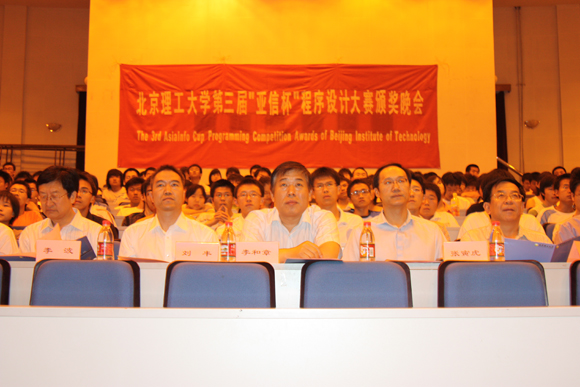 2009年5月24日晚,德赢AC米兰中国官方网站第三届“亚信杯”程序设计大赛颁奖晚会在中关村校区七号楼报告厅成功举办。出席本次晚会的领导和嘉宾有:德赢AC米兰中国官方网站李和章副校长,亚信科技(中国)有限公司副总裁张寅虎先生、亚信科技(中国)有限公司副总裁刘丰先生,亚信科技(中国)有限公司人事资源部季青老师,德赢AC米兰中国官方网站教务处仲顺安处长、林海副处长,基础教育学院杨刚副院长,软件学院分党委李波书记,软件学院闫达远副院长,软件学院陈旵明副书记、副院长,德赢AC米兰中国官方网站ACM竞赛队教练林永钢老师。晚会由软件学院本科2008级的刘明德、董佳琦、潘晓梦、杨海瑞主持。
