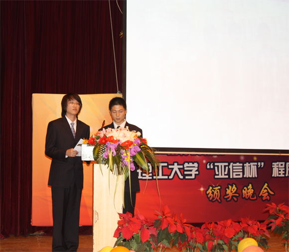 在颁奖晚会上穿插着由软件学院学生自主编导的节目,有:软件学院07级同学武威和李青霞带来的声情并茂的原创朗诵《追梦亚信》,表现了同学们比赛的艰辛历程与收获;本科2008级的同学们带来的一个娱乐与教育意义兼备的小品《我要AC》,深刻地反映了同学们学习程序设计的苦与乐;由2007级于宇、屠楚楠和2008级胡晓炜带来的合唱《奔跑》。