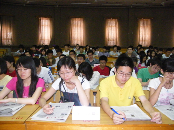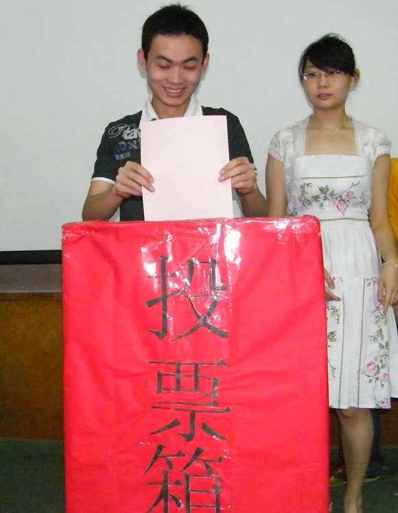 下午1点30分,各院投票人,监票人陆续到场。两点整,评选大会准时开始。首先,校学生会主席张文博同学向与会代表就第五届“我爱我师”的筹备工作进行了介绍。他在筹备工作介绍中提到,希望通过“我爱我师”的评选活动,增进师生了解,引导同学们更多的关注自己身边的优秀教师,也让老师们更多的了解同学们的感受。随后,播放了为每个老师精心制作的宣传片。为配合此次评选活动,校学生会专门印制了《学生会之声》我爱我师专版。评选活动在各院监票人的监督下顺利进行。