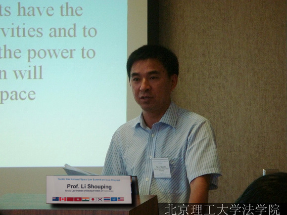 我校空间法研究所所长、法学院副院长李寿平教授在会议上作了题为“国际法在中国空间法中的地位及其与环太平洋国家空间法与空间活动的关系”专题报告。李寿平教授用30分钟时间向与会学者和联合国官员全面介绍了中国空间立法现状及中国空间立法存在的问题,分析了国际法在中国空间法中的地位及其对中国空间立法的影响。在会议中,李寿平教授就中国空间立法和中国空间管理机制相关问题与各国学者进行了深入交流并回答了相关问题。
