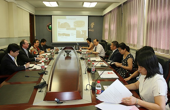 2009年6月22日上午,澳大利亚纽卡斯尔大学常务副校长Kevin McConkey(麦克文)教授、国际合作部主任Tracy McCabe女士、国际业务发展主任与中国业务首席代表刘勉先生和中国业务首席代表行政助理姜楠先生一行四人访问我校。