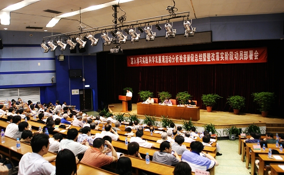 6月24日下午,我校在中心教学楼一层报告厅召开了深入学习实践科学发展观活动分析检查阶段总结暨整改落实阶段动员部署会。部属高校深入学习实践科学发展观活动指导检查第十四工作组副组长、南京理工大学原校长徐复铭同志,学习实践活动联络员、教育部学位办文理医处调研员唐继卫,全体校领导,出席了会议。