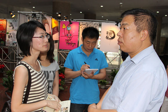 校领导在饶有兴趣地参观了展览后对我院发起“校庆礼品设计”工作给予了高度的肯定和评价,并为此次展览做出贡献的全体师生表示衷心的感谢。