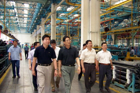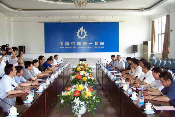 郭书记一行受到了包头市市长呼尔查、市委常委副市长陶永山、主管科教的副市长李秉荣等市里领导的热情接待。6月17日下午,郭大成书记一行来到内蒙一机集团参观。包头市副市长李秉荣、市政府副秘书长郑国强、市教育局党委书记、局长康秉富、副局长杨文政、市科技局局长方立等陪同参观。郭书记首先参观了军品展厅,然后到北奔重汽总装厂的生产车间进行了实地考察(北奔重汽为一机集团引进德国奔驰公司成套技术组建)。