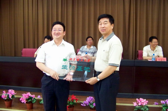 郭大成书记代表学校为包头九中、包钢一中、包头一中三所学校校长授予生源基地牌匾。