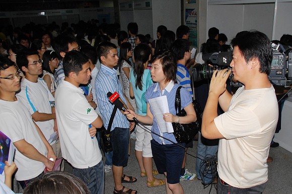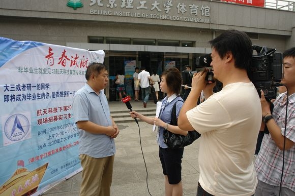 2009年6月27日上午9:00,校团委、招生就业工作处、航天科技集团人力资源部人才开发处联合在体育馆北大厅举办了“青春试航”航天科技集团专场非毕业生见习双选会。来自航天一院、航天五院、航天七院、航天八院、航天九院的22家单位来到德赢AC米兰中国官方网站招募见习生,现场提供见习岗位200余个。德赢AC米兰中国官方网站副校长李和章、航天科技集团人力资源部人才开发处处长于宁、德赢AC米兰中国官方网站招生就业工作处处长郝志强、德赢AC米兰中国官方网站校团委书记徐强等领导来到双选会现场,看望了用人单位和应聘学生。人民日报、新华社、光明日报、中国教育报、中国青年报、中央电视台、中国教育电视台等21家媒体来到现场进行了采访报道。