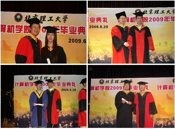 2009年6月28日上午8:30计算机学院2009年毕业典礼在中心教学楼一层报告厅隆重举行。计算机学院全体领导、学科负责人、教师代表和348名毕业生以及部分学生家长代表出席了本次典礼。毕业典礼由计算机学院副书记、副院长赵满老师主持。典礼在庄严的国歌声中拉开帷幕。