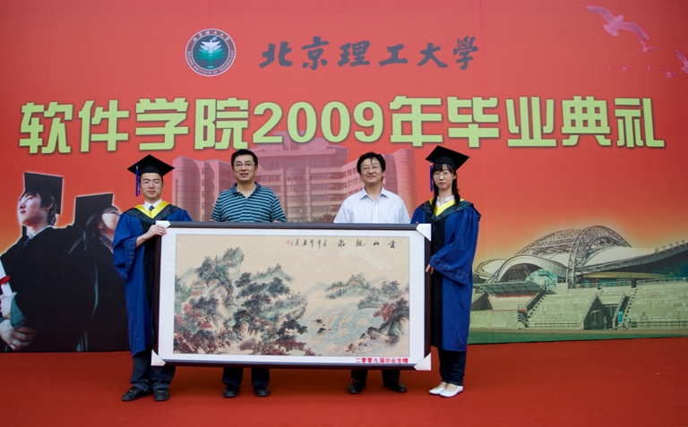毕业生代表钟文峰和王茜向学院赠送精美的山水画,以表达对学院辛苦的栽培的感谢。