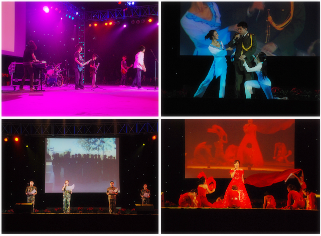 同学们的笑声、欢呼声与炫目的舞台灯光和手中挥舞的荧光棒交织在一起,共同构成一片欢乐的海洋。在这欢乐的气氛中,《歌唱祖国》的乐曲响起,所有演员和观众同唱一首歌,09级军训文艺汇演圆满落幕!