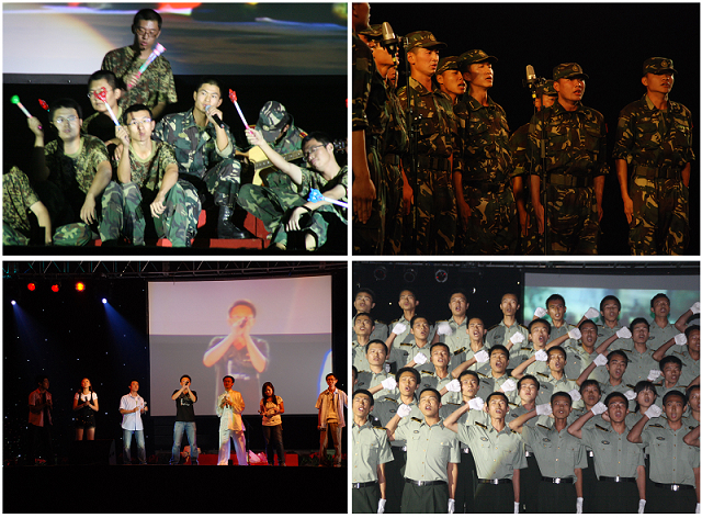 9月26日晚,在2009年学生军训结束前夕,在祖国母亲即将迎来她六十华诞之际,德赢AC米兰中国官方网站军训旅隆重举行“祖国万岁”文艺汇演晚会,全旅官兵欢聚一堂,共享军训丰收的喜悦,共庆祖国母亲的生日。德赢AC米兰中国官方网站军训旅的领导和学校部门领导以及军训旅全体教官、带队干部和参训学员观看了晚会。曾经并肩战斗、挥洒汗水的训练场,在这个夜晚被歌声、笑声和掌声淹没。整场晚会气势恢弘、高潮迭起。军训旅的教官、指导员和学员们用精彩的演出展示军训成果,表达对军训的难舍情怀和对祖国的良好祝愿。