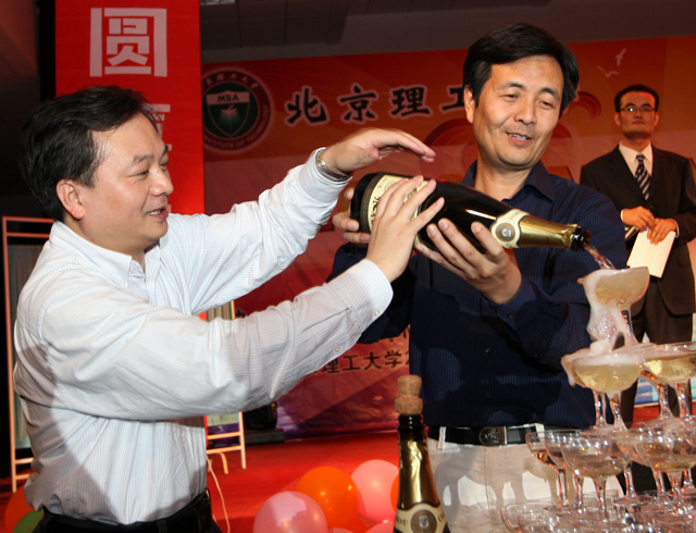 “又是一年好收成”香槟塔倒酒仪式将酒会的气氛推向了高潮,嘉宾们将象征着欢庆的美酒缓缓的倒入香槟塔中。李书记为所有与会嘉宾和同学致上祝酒辞,祝福09级MBA新生在德赢AC米兰中国官方网站学有所成,为母校的美好明天贡献力量。