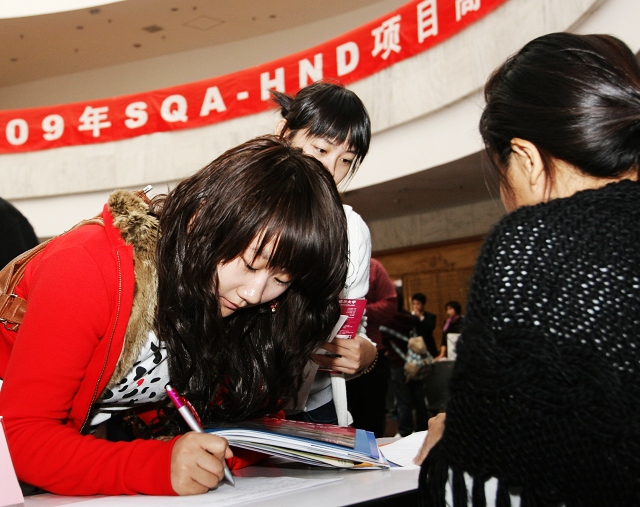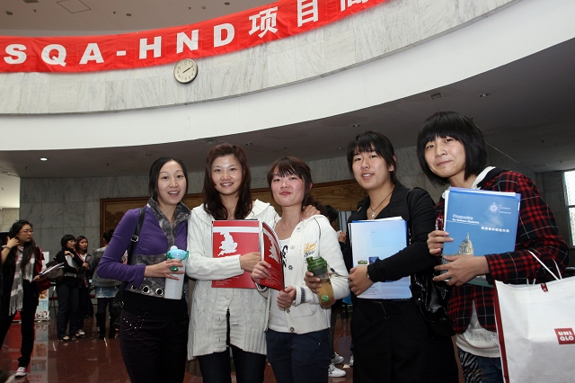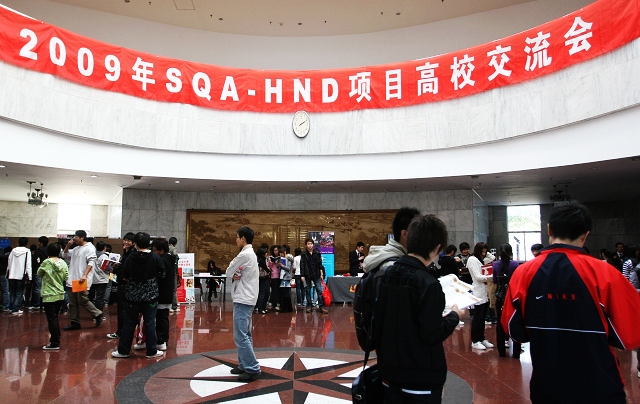 受教育部留学服务中心的委托,人文学院SQA中心于2009年10月13日在中心教学楼一层大厅举行2009年SQA HND项目高校交流会,参加此次交流会的国外高校共有21所,其中英国15所,澳大利亚1所,美国4所,爱尔兰1所。本次交流会为我校SQA HND项目学生了解将来留学学校的基本情况,专业特色,录取条件提供了近距离面对面接触和交流的机会。