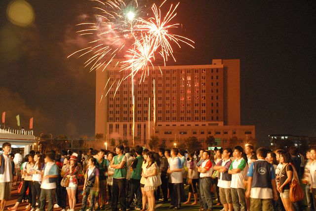 建校五周年庆典暨2009级新生开学典礼结束后,与会领导、嘉宾与珠海学院师生一同观看了精彩纷呈的“建校五周年庆典暨迎新晚会”。饱含青春与活力的学子们用嘹亮的歌喉、优美的舞姿演绎出对母校五周年庆典的欣喜之情,也表达出对2009级新生的欢迎之情。整场晚会高潮迭起,在绚丽的焰火中落下帷幕。