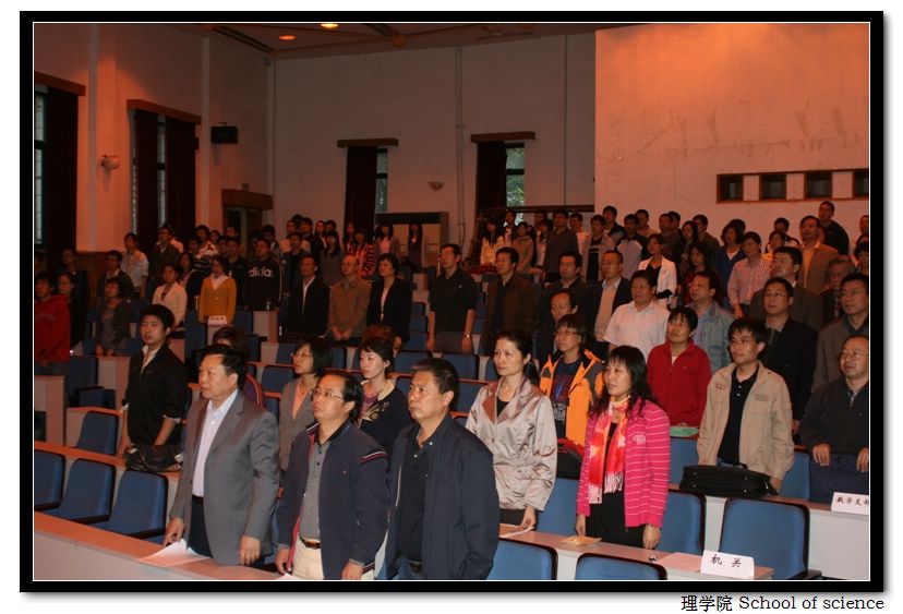 理学院党委书记何明、院长胡长文、副院长陈一宏、副书记兼副院长姜艳及我院党委委员、各党支部书记、233名党员(应到255人)参加了会议,大会由姜艳副书记主持。会议在庄严的国歌声中拉开序幕。