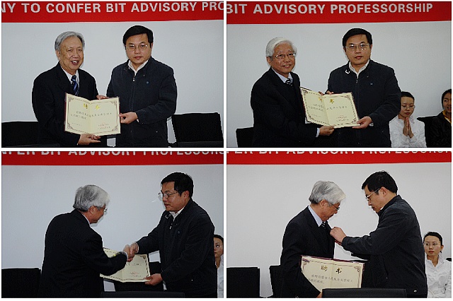2009年10月19日下午,我校在2号楼233会议室举行仪式,聘请中国空间技术研究院研究员吴宏鑫院士、北京电子技术研究所研究员蔡吉人院士为顾问教授。校长胡海岩院士,副校长赵长禄教授,王越院士,人事处处长曲虹研究员,信息与电子学院张笈书记、安建平副院长、仲顺安教授、陶然教授及部分师生代表参加了聘任仪式。聘任仪式由赵长禄副校长主持。