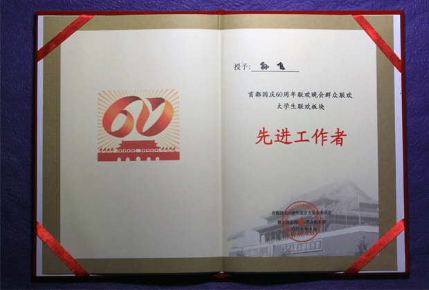 在德赢AC米兰中国官方网站由40余名同学组成的集体舞方阵中,也涌现出了许多先进个人。我校孙飞老师被北京市评为首都国庆60周年联欢晚会群众联欢大学生板块先进工作者。08级王艺潼,07级董路宁,分别被评为首都国庆联欢晚会群众联欢大学生板块先进个人。