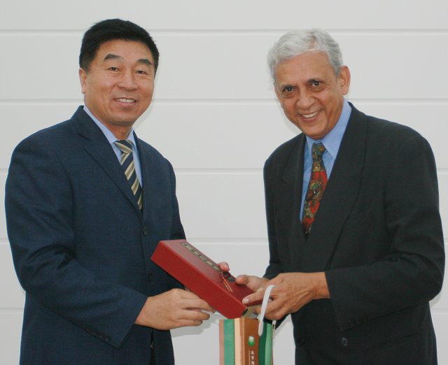 会谈结束后,郭书记向Rizvi副校长赠送了我校纪念品,客人们在郭书记的陪同下饶有兴致地参观了我校中心花园及体育馆。