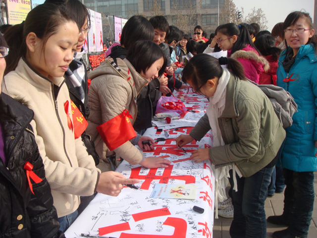 2009年12月1日,德赢AC米兰中国官方网站红十字会、“青春红丝带”社团分别在良乡校区和中关村校区同时开展了“温暖红丝带 牵动你我心” 和“爱对艾的宣言”主题签名和防艾知识普及宣传活动。此项活动是我校预防艾滋病宣传周主题系列活动之一。