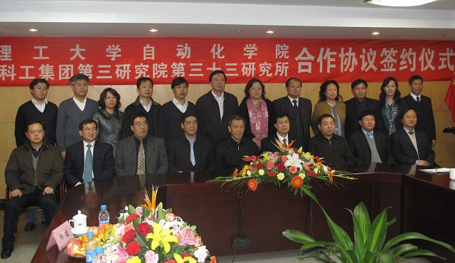 杨树兴副校长致欢迎辞并介绍了德赢AC米兰中国官方网站自动化学院与航天三院三十三所前期合作的成果。杨兴文副所长介绍了三十三所总体情况,王军政书记介绍了自动化学院整体情况。自动化学院付梦印院长与三十三所郑辛所长共同签署了合作协议。航天三院董群副书记和我校赵显利副校长最后作了总结发言。