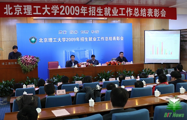 会议由招生就业工作处处长郝志强主持。郝志强以《2009招生就业工作大事记》方式,向与会人员就招生就业工作一年来取得的成绩、发生的重大事件做了简要介绍。接着,由招生就业工作处副处长郭宏、副处长罗佳,分别就2009年招生、就业工作情况做了详细汇报。