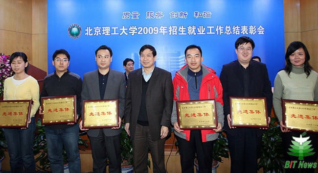 今年我校招生就业工作都取得了可喜成绩。招生方面:在已经向社会公开各高校录取最低分的24个省当中,我校有3个省进入全国高校前十名,14个省处于全国高校10-20名之间, 6个省位于全国高校20-30名之间,与其他“985”院校相比,有18个省进入前15强,全部进入前20强。就业方面:本科生一次达就业率97.82%,研究生一次就业率达98.76%,获得了“2009年北京地区高校就业工作先进集体”荣誉。有两人获北京市就业工作先进个人称号,1人获全国就业工作先进个人称号。