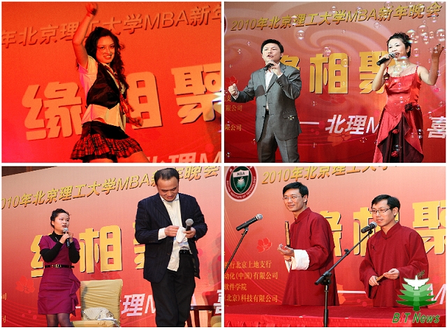 12月28日晚,德赢AC米兰中国官方网站MBA师生欢聚一堂,在北京喜来登大酒店隆重举行 “缘相聚,心飞扬——北理·喜来登之夜”新年晚会。德赢AC米兰中国官方网站党委副书记侯光明,研究生院常务副院长薛唯,财务处处长赵荣娣,副处长任世宏,管理与经济学院党委书记李金林,副院长何海燕,副院长副书记仇芳,院长助理、MBA中心主任董沛武和部分MBA任课教师,以及为此次晚会提供支持的,中国建设银行上地支行、欧姆龙自动化(中国)有限公司、中保信安科技有限公司、世纪佳缘网、用友管理软件学院、北京北大纵横管理咨询集团等企业嘉宾,新浪网络、人力资源管理杂志、全球商学院资讯、MBAHome网、中国MBA网、MBAedu网、MBA中国网等媒体嘉宾,MBA同学,校友,北京兄弟院校的MBA联合会主席共同出席了这次晚会,容纳400人的会场人座无虚席,大家共同祈福2010年到来。