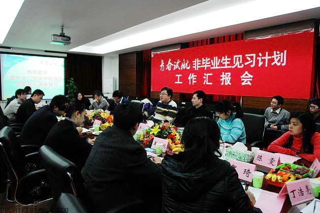 汇报会由校团委书记徐强主持。他首先对团中央领导的到来表示热烈欢迎,接着介绍了“青春试航”非毕业生见习计划自2009年4月启动以来的开展情况,徐强书记将工作开展的成效概括为“五个一”:即“建设了一块共青团组织自己的工作阵地;探索了一套可以复制的工作模式;组建了一支强有力的青春试航志愿者队伍;打造了一个深受学生欢迎的工作品牌;开创了一个多方位育人的工作载体”。徐强老师还介绍了活动开展中表现出的一些现象、需要改进的地方以及他对此的思考和建议。随后,机车学院分团委书记王泰鹏通过“责任”、“视野”、“成熟”和“振奋”这几个关键词,生动精彩地描述了机车学院7个暑期实践基地的相关情况。