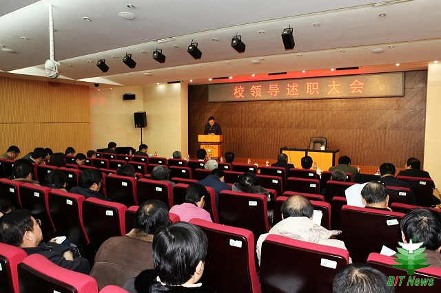 1月14日下午,按照工业和信息化部党组的部署和学校工作安排,我校举行了2009年度校领导述职大会。会议由校党委书记郭大成主持。工业和信息化部人事教育司副司长尹卫军,人教司直属干部处雷凯喆,北京市委教育工委联络员沈云锁同志出席会议。我校党政领导班子成员,原校领导代表,院士、长江学者、杰青、二级岗教授代表,学校中层正职干部,以及其他教职工代表、民主党派代表等共110余人参加了大会。会上,11位校领导分别从德、能、勤、绩、廉等五个方面做了个人年度工作述职。
