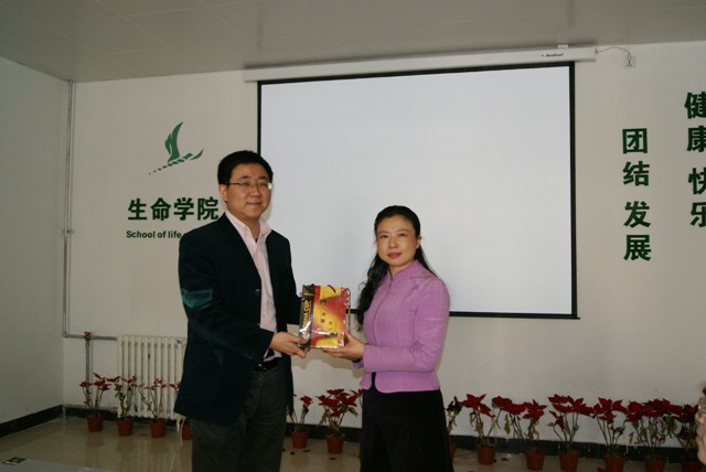 唐晓英副院长代表生命学院向李寅研究员赠送纪念品