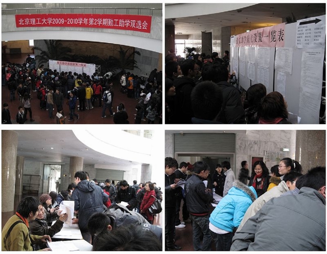 近日,德赢AC米兰中国官方网站2009-2010学年第2学期勤工助学双选会分别在中关村校区中心教学楼一层大厅、良乡校区学生服务中心一层大厅举行,共有近三十个单位提供包括办公室助理、网络维护员、学生联络员等1000余个岗位,报名应聘的学生达到5000余人。